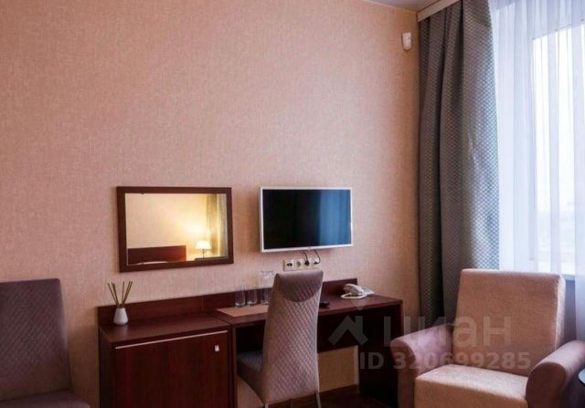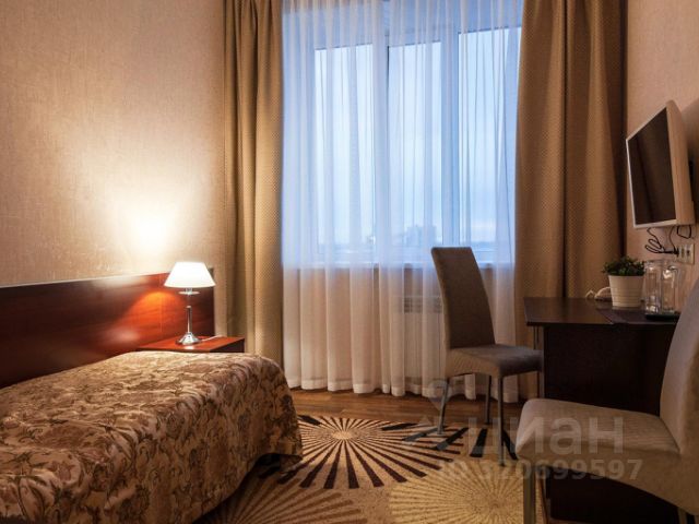 Комната для одного гостя (12м2) - номер с кроватью 120/200 и ортопедическим матрацем.В номере имеются: вешалка для верхней одежды, вешалка передвижная, светильник, телевизор, тумбочка, зеркало. Высота потолков 3 метра. Большое панорамное окно.