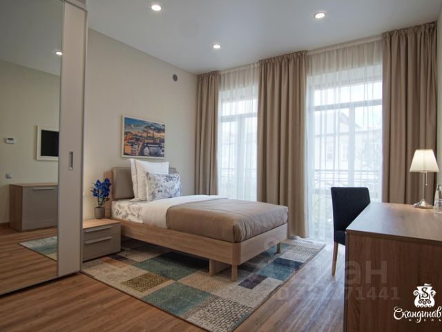 Изысканный и просторный номер предлагает своим постояльцам идеальную обстановку для максимально комфортного пребывания. Пространство номера разделено на спальную и гостиную зону с мягкой мебелью. В распоряжении Гостей двухспальная кровать размером 180*200 см с высококачественным постельным бельем, ортопедическим комбинированным матрасом, с возможностью выбора жесткости. Гостиная зона оборудована элегантной мебелью из натурального дерева, мягким диваном, комфортным креслом. К услугам ванная комната с современной душевой кабиной, оборудованная тропическим душем и подогревом пола. Гостям предоставляются наборы полотенец, велюровые халаты и тапочки, туалетные и косметические принадлежности, набор для приготовления чая, кофемашина.